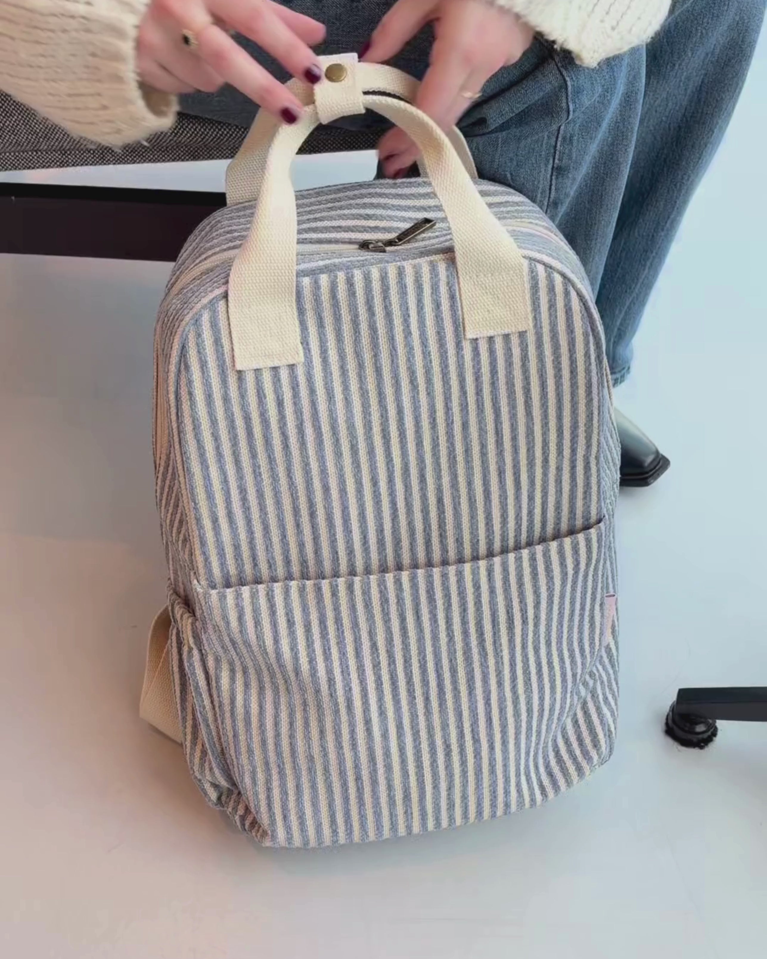 De Høyde set 3-delig Jacquard Stripe is de ultieme totaaloplossing voor de vrouw die gedurende haar dag moeiteloos wil schakelen tussen werk, vrije tijd en reizen. Deze complete set bestaat uit onze populaire rugzak laptop, een matching make up tas en de stijlvolle crossbody tas dames. Het meest opvallende kenmerk is het hoogwaardige Jacquard textiel. Het streeppatroon is direct in de stof geweven, wat zorgt voor een stevige structuur die mooi in model blijft. De kleur biedt een stijlvol alternatief voor de standaard zwarte tas en past bij vrijwel elke outfit.